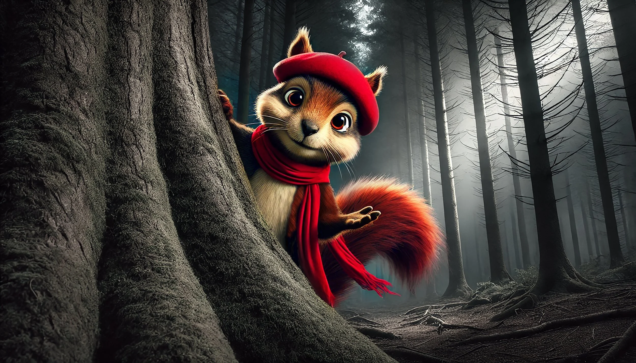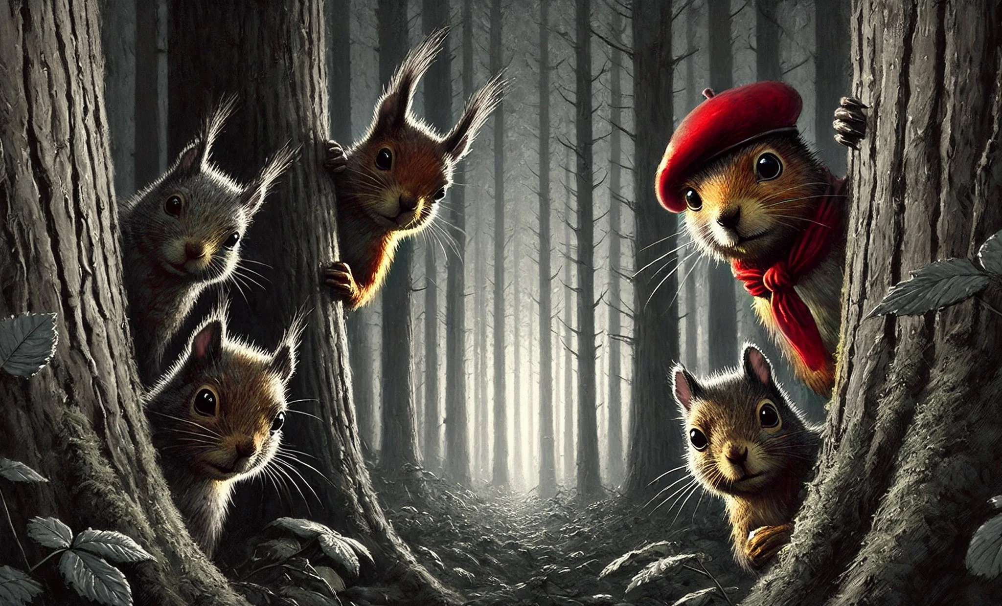 In the aftermath, the grey squirrels, led by the mighty Granite, took control. They built The Thicket to protect the forest from future harm. Nuts were rationed. Rules were enforced. Order replaced colour. Safety replaced freedom. The forest survived, but something vital was lost.